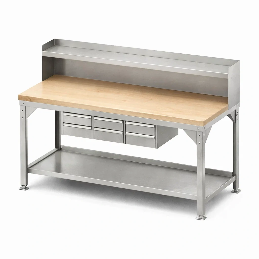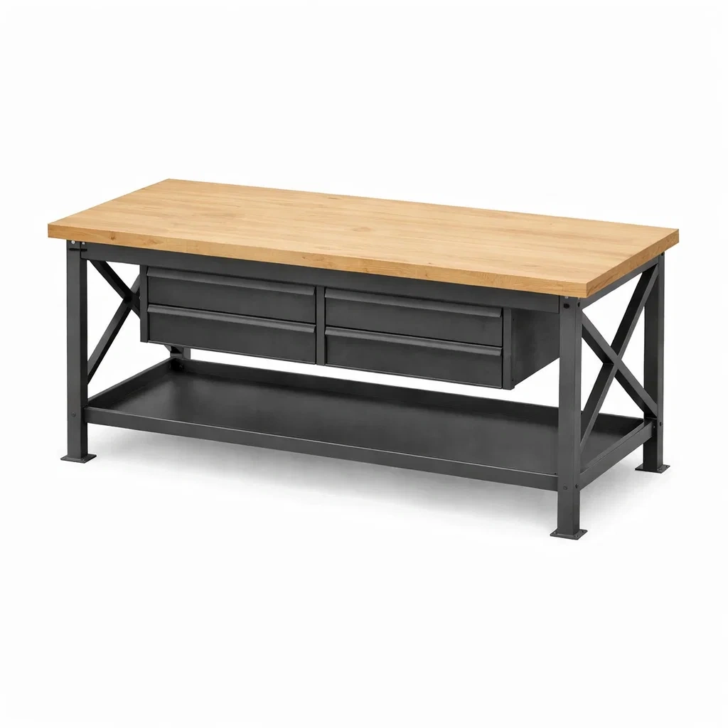 Établi en acier et bois massif avec tiroirs